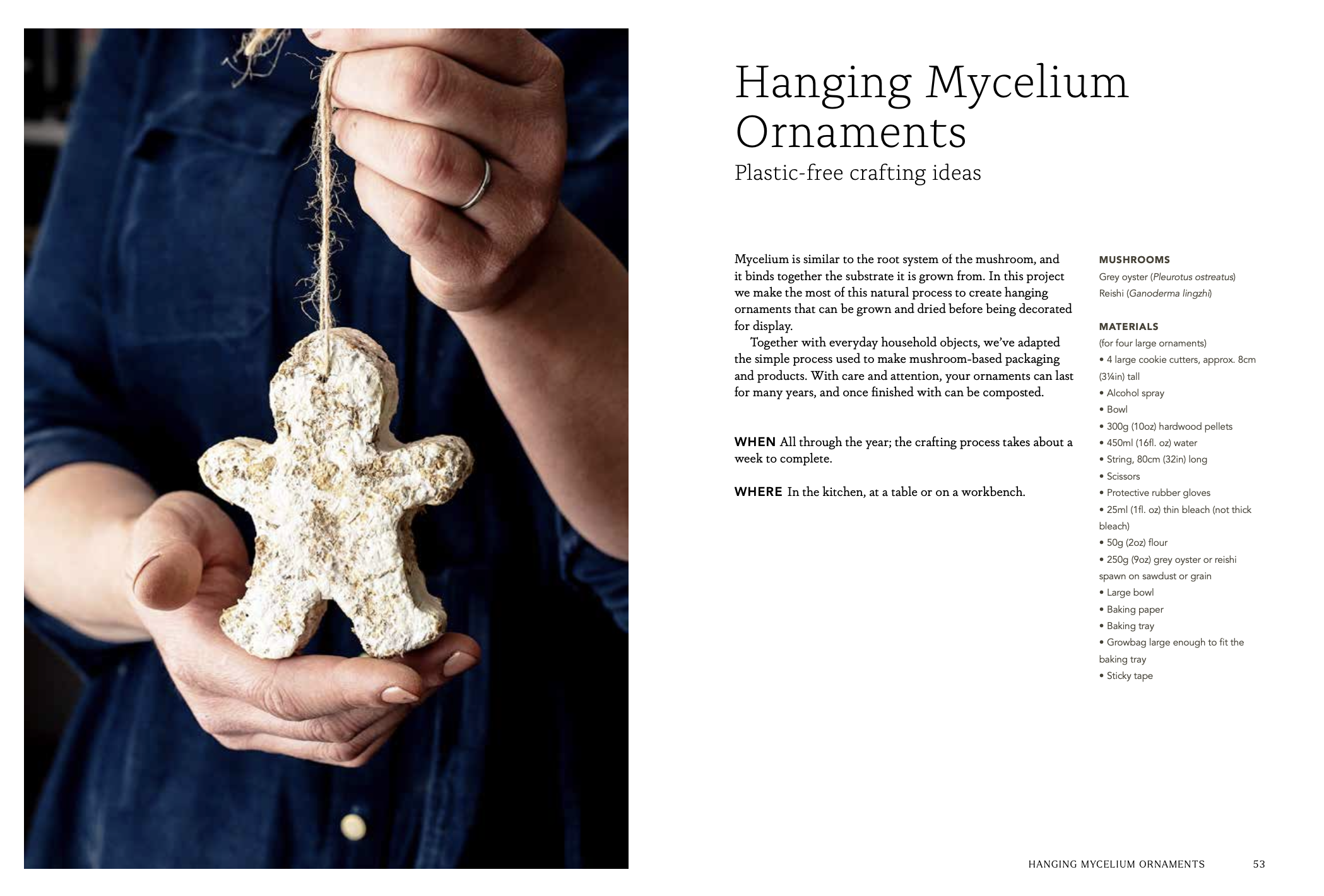 Using everyday household items, we’ve adapted the same principles used to make mushroom-based packaging and sustainable products. With a little care and patience, your ornaments will cure beautifully - and when you’re eventually finished with them, they can go straight into the compost.